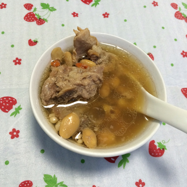 排骨1条;薏米8克;芡实5克;扁豆5克;党参5克;枸杞5克;黄芪5克;