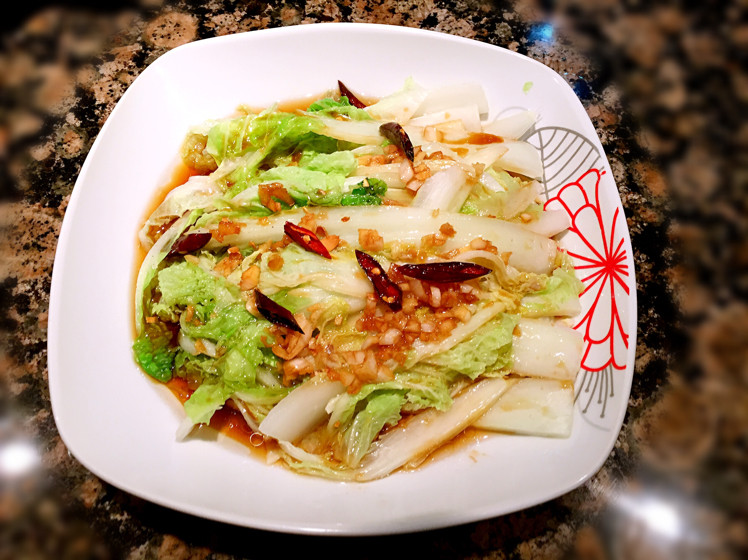 1:大白菜水里放点盐煮熟。