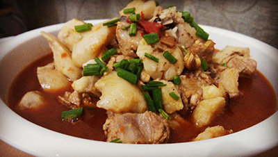 6:调稀的辣椒酱浇淋在排骨上。