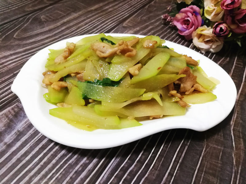 9:然后,合入切好的佛手瓜翻炒翻炒。