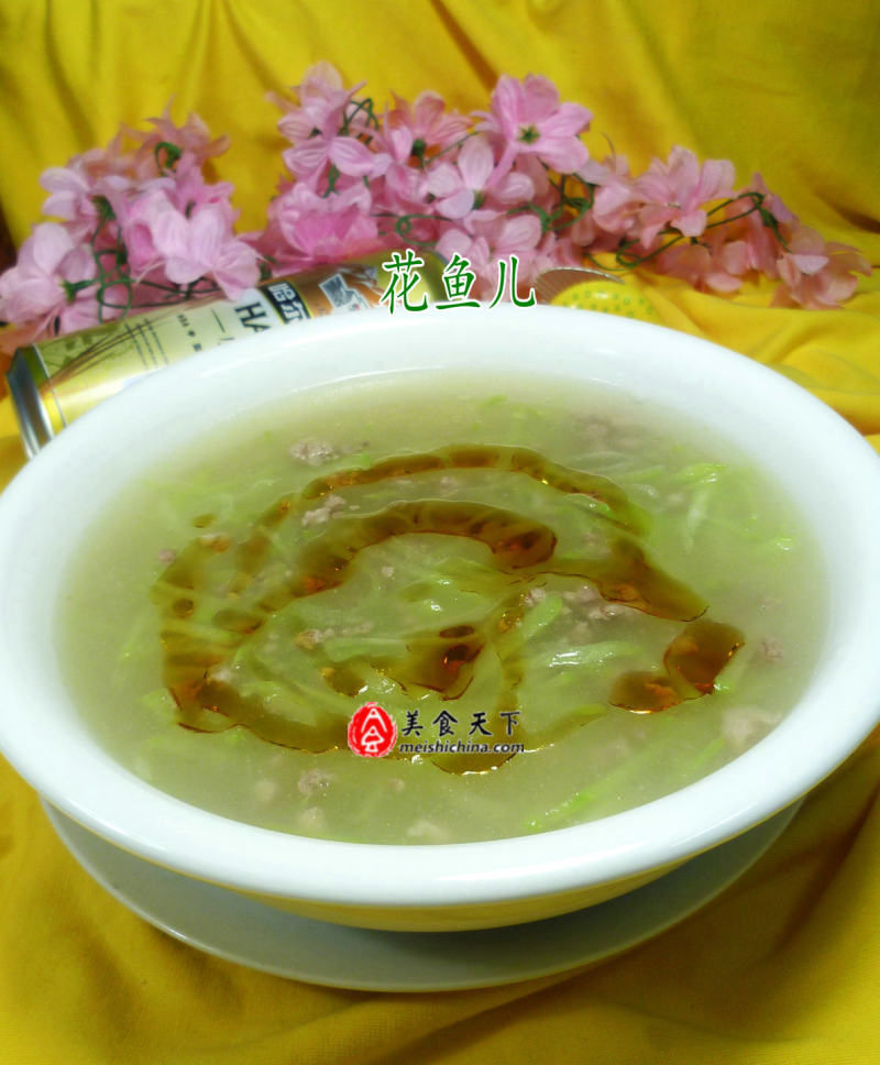 2:肉切片,加葱姜碎抓腌。小量的肉,腌的时候也没有那么精准,盐生抽香料各小量就好了。佛手瓜切片。