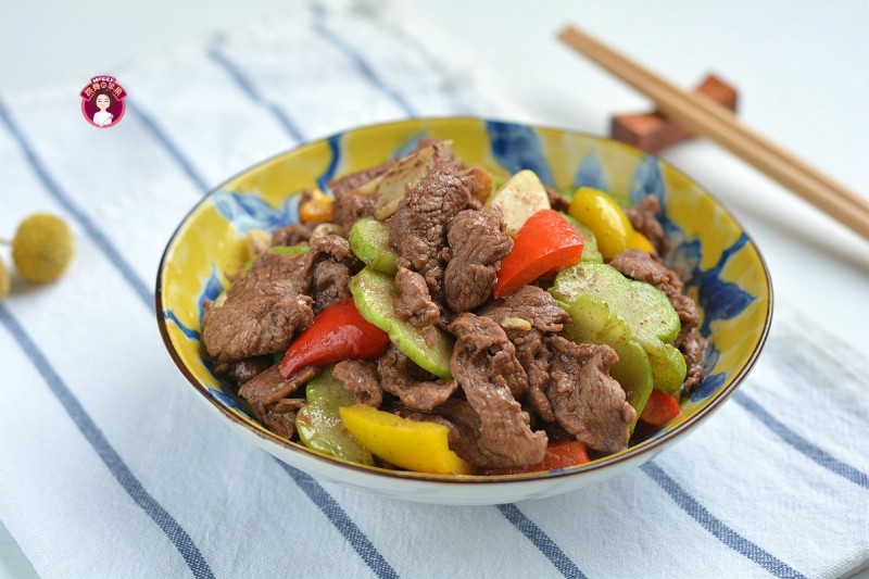 1:牛里脊切薄片,佛手瓜清洗干净。