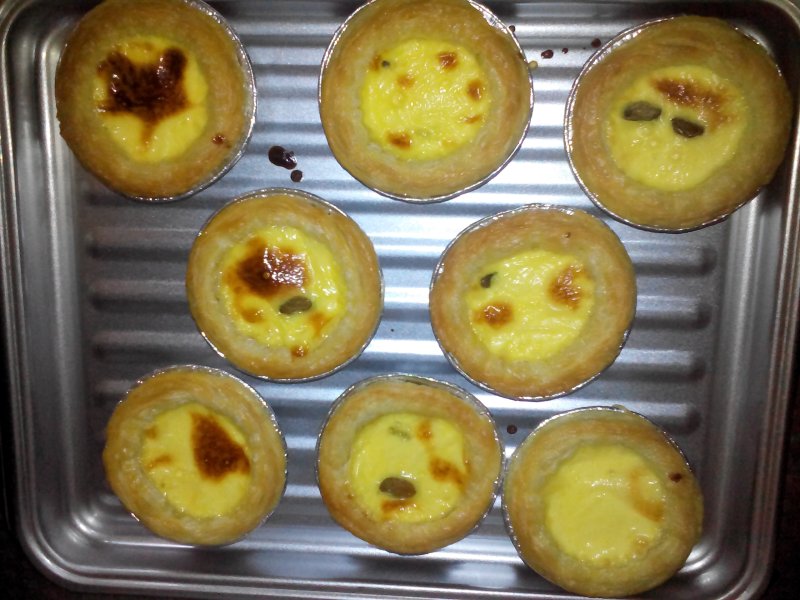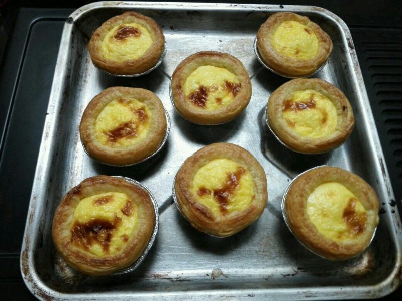 5:取出趁热吃了,挞皮酥脆,挞液嫩滑,入口即化,好吃极了(≧▽≦)