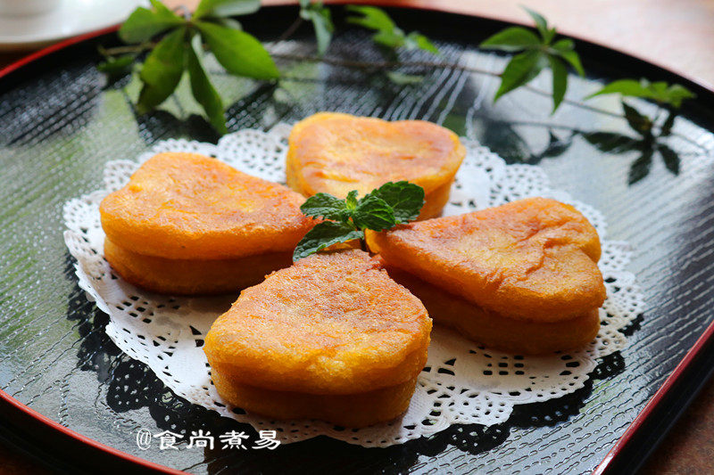 3:我不用磨具辅助工具就是一个汤匙就可以做出这漂亮的爱心南瓜饼