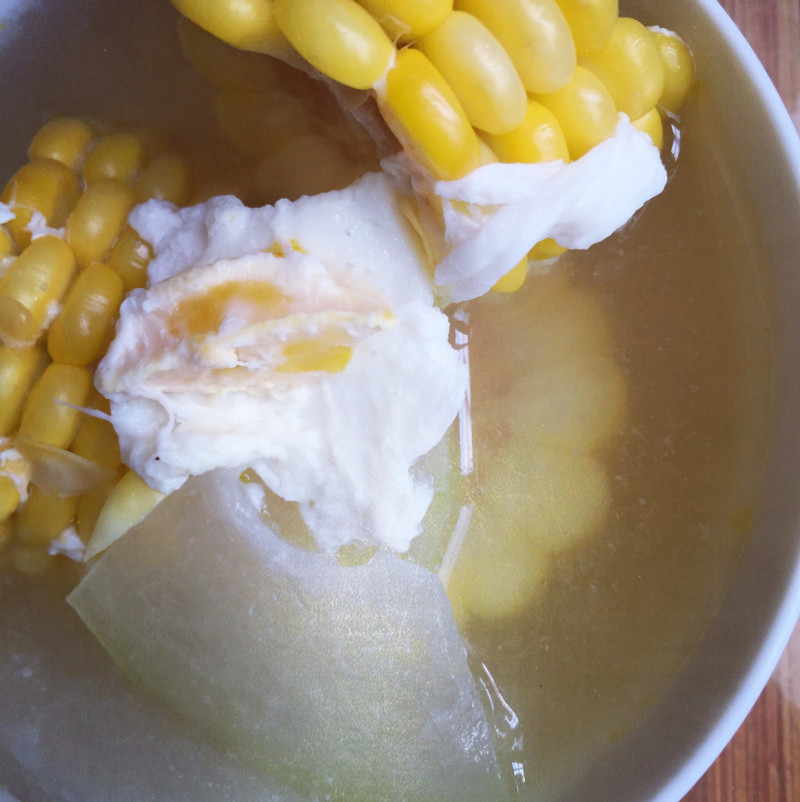3:一碗营养丰富、口味独特的玉米笋冬瓜汤做成了:冬瓜似绿玉,玉米似笋尖,汤中有玉米的甜香,冬瓜的清香,火腿的肉香。一口汤含在嘴里清香中带咸鲜,缓缓下肚,治愈了你一天的工作疲劳。