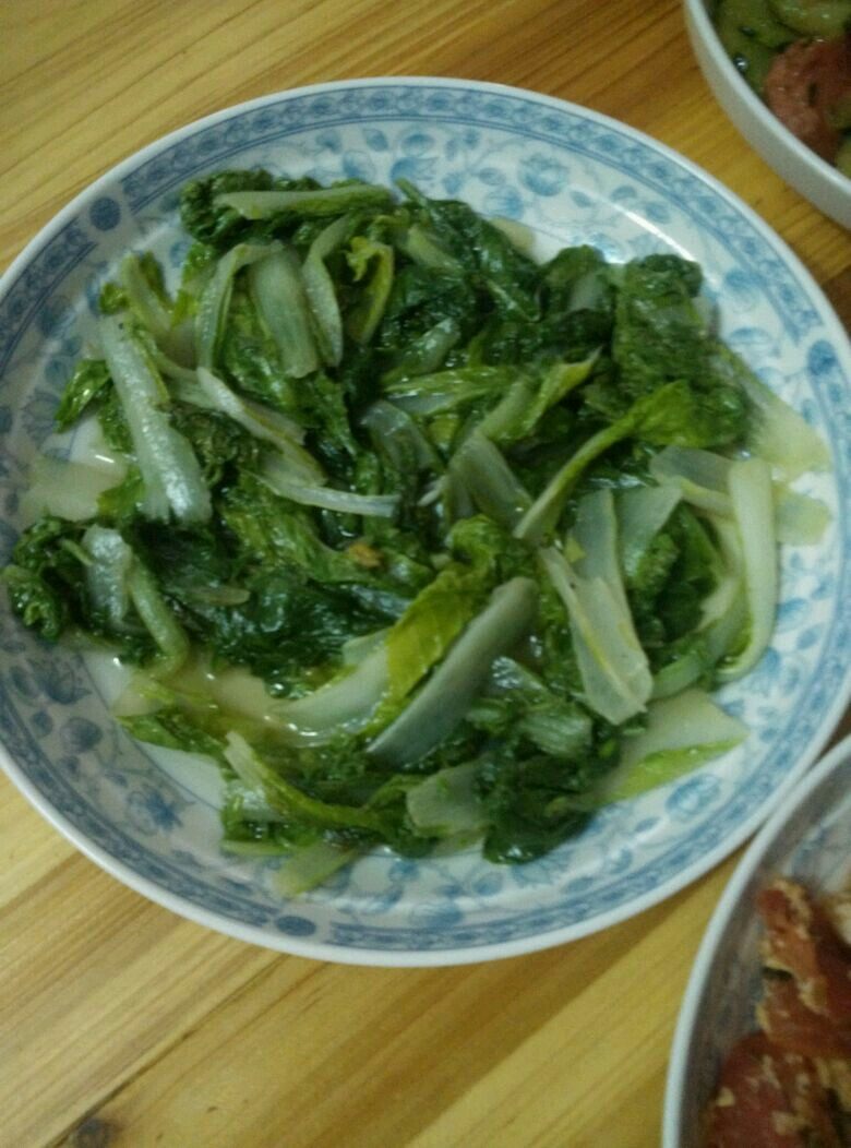 4:放盐稍炒,断生即可。出锅前放香油等调味品。