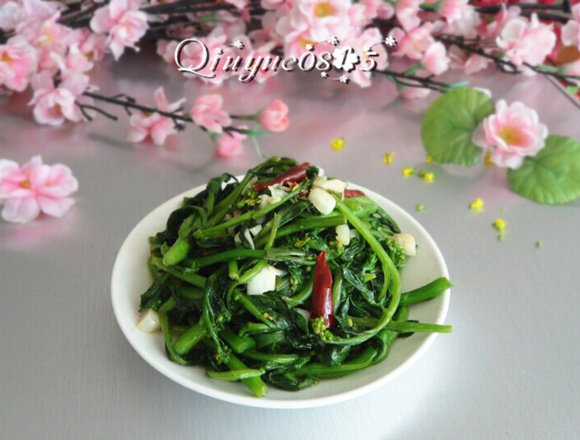 1:油菜用淘米水泡洗干净,然后用清水冲净