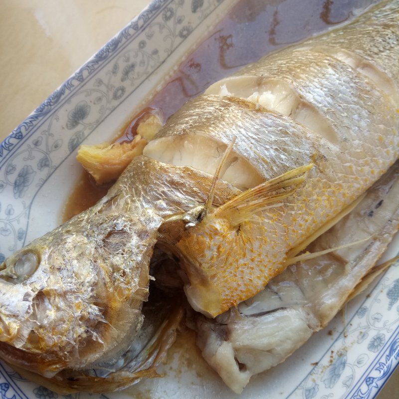 1:1.冰鲜黄鱼让店家去鳞破肚弄好,自己拿回家冲洗干净,放料酒、盐、酱油、姜片、葱段腌着;