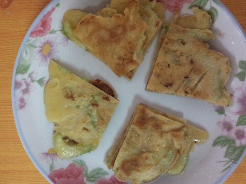 煎的时候注意小火,除了芹菜也可以放其它的菜,比如胡萝卜、土豆、青菜等……