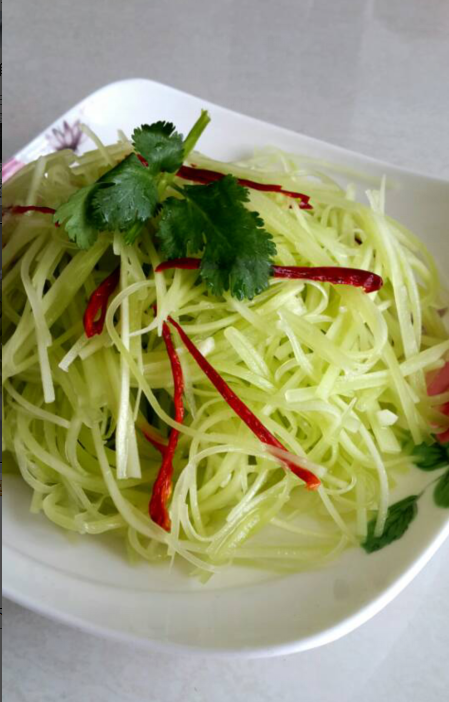 2:莴笋拦腰切断,切丝,尽可能切细,比较好入味,卖相也会好些。