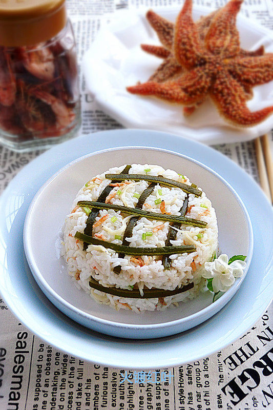 3:下海带丝、洗净的银鱼干、虾米