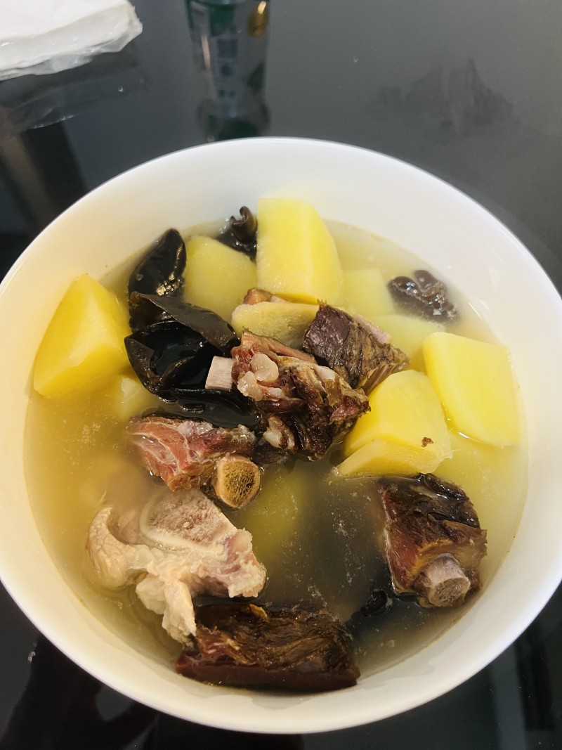 2:放入泡好的木耳,煮40分钟,然后放入土豆。