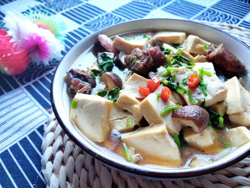 8:开盖下豆腐和香菇,再炖煮三五分钟。