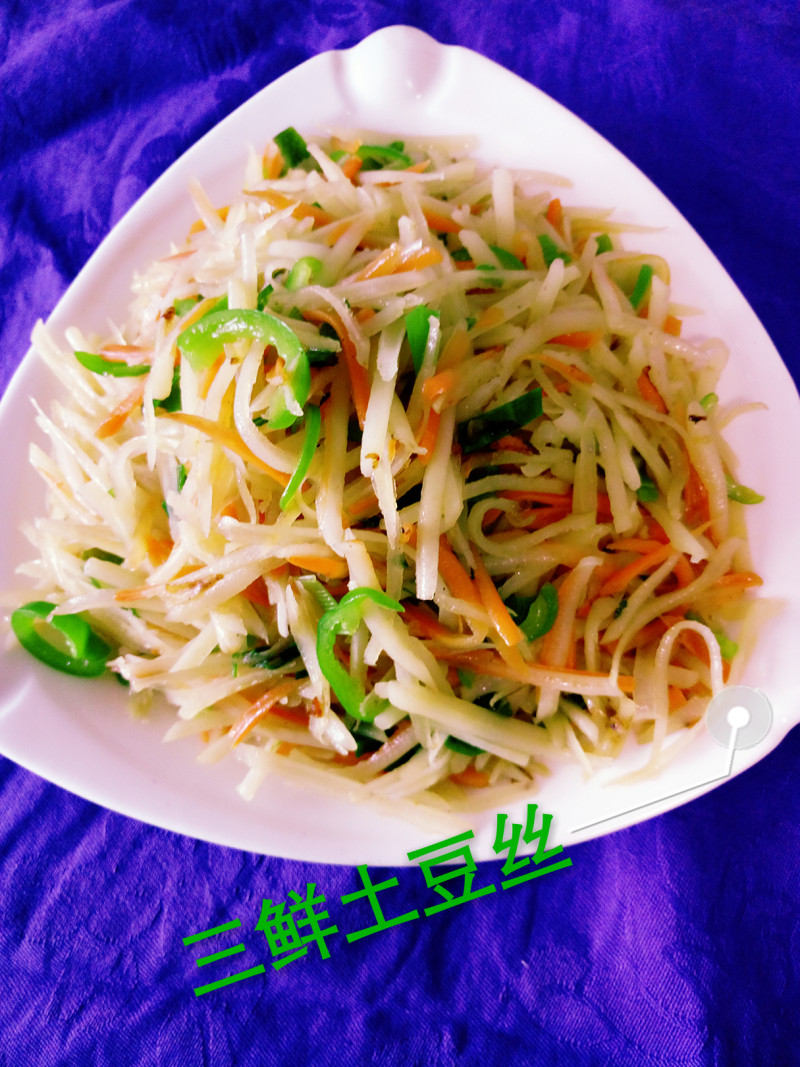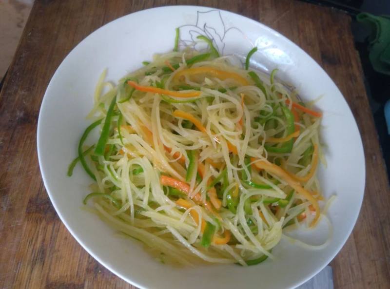 1:土豆,青椒,胡萝卜,洗净切丝备用