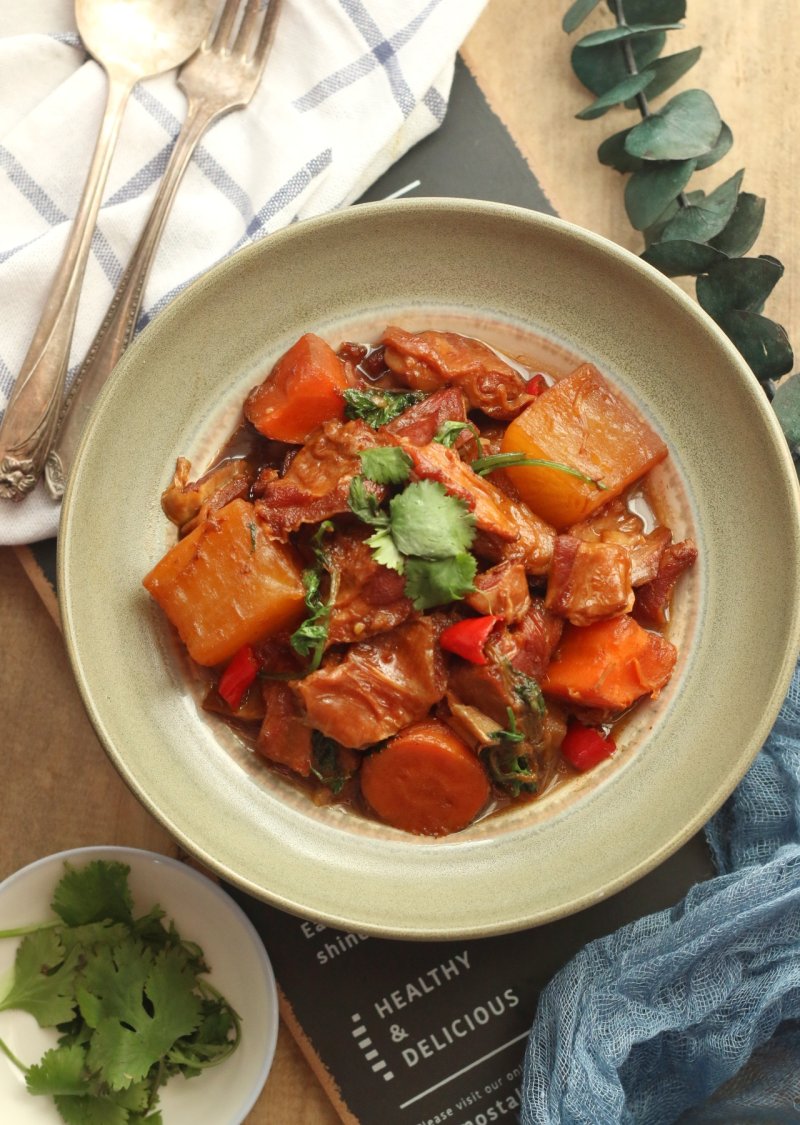 6:调入适量食盐,开锅后转中小火继续炖15-20分钟,最终炖至汤汁浓稠,收汁到自己满意的程度就可以了。