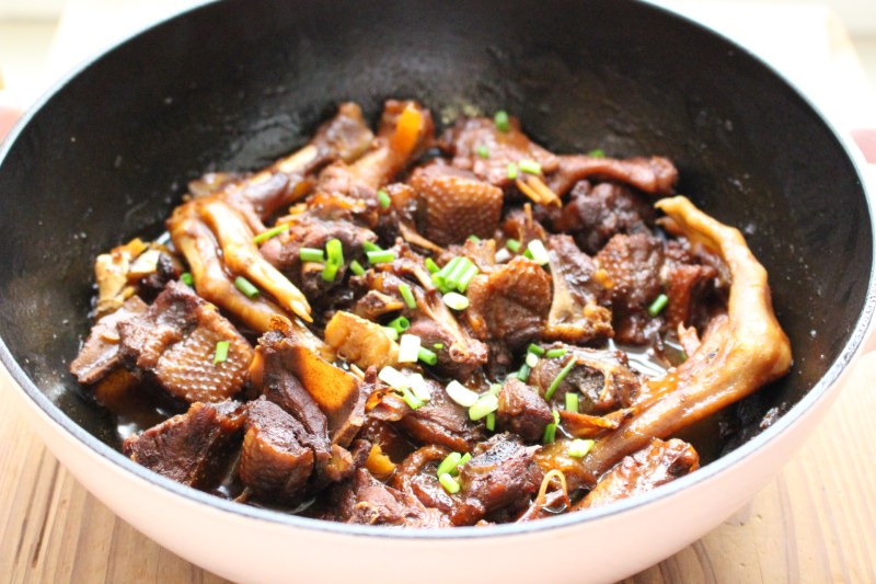 8:大火烧开后改小火焖30分钟加入盐、生抽、老抽、蚝油,继续焖半个小时,出锅喽。