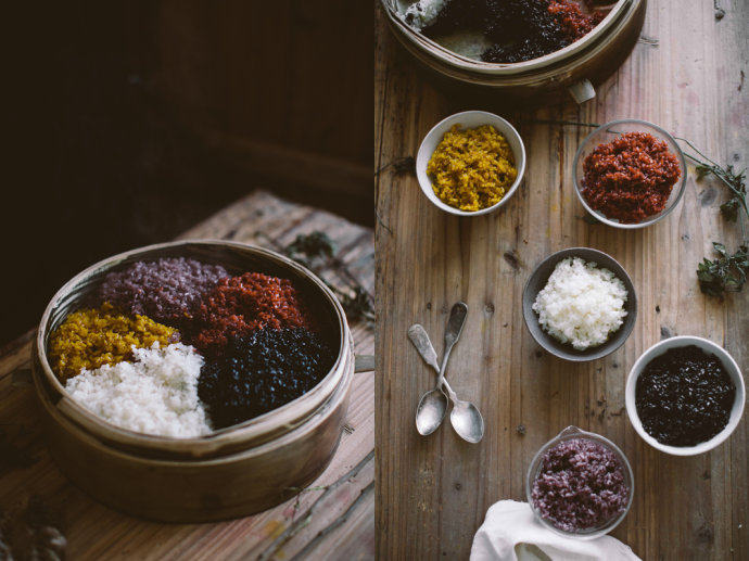 15:便可蒸出黑、红、黄、紫、白(糯米本色)五种颜色的糯米饭