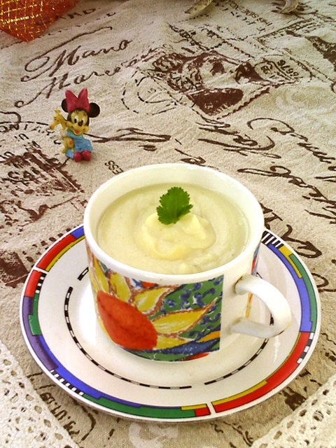 5:打成细腻的羹。喜欢热饮的可以再倒入奶锅加热,要不断搅拌以免糊底。不喜欢热的可以直接打好后就食用。