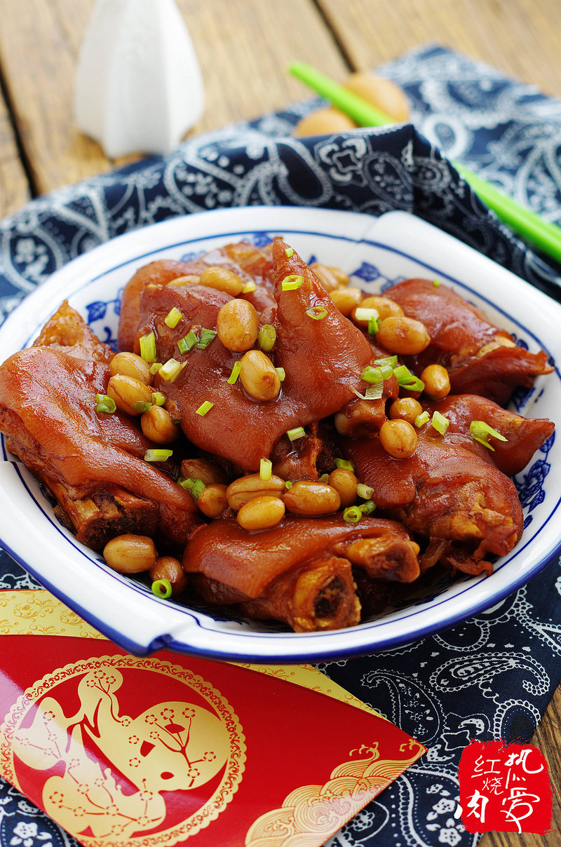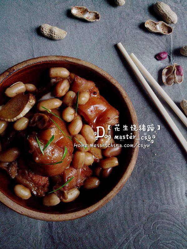 如果你喜欢软烂的花生也可以一开始就加入,花生米煮过之后可以去掉浮沫,不会影响猪蹄的卖相。