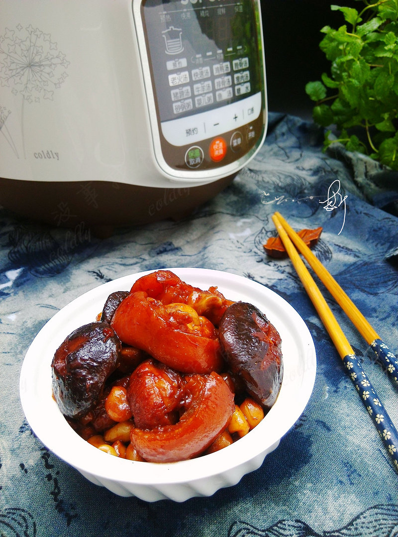 猪蹄500g;花生50g;蚝豉6只;香菇8朵;腐乳2块;