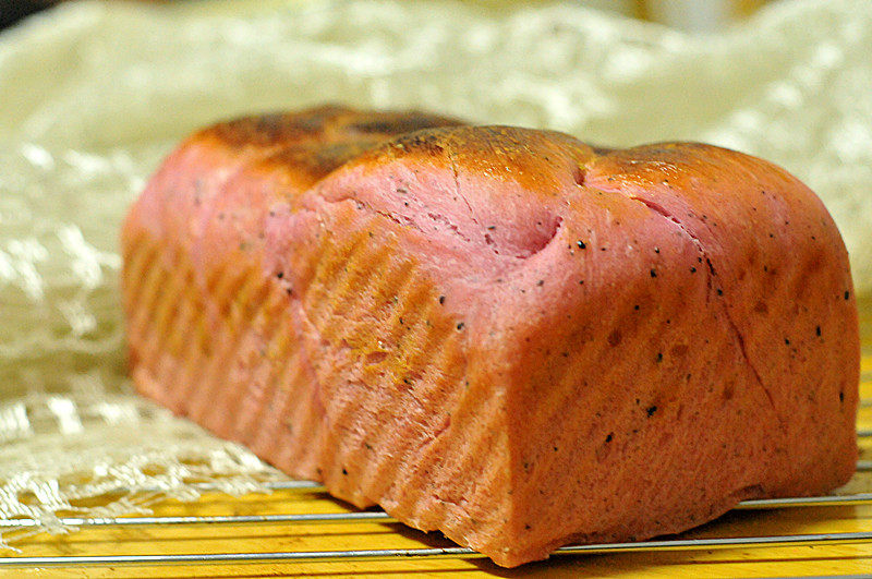 红心火龙果150克;高粉350克;盐2克;酵母4克;