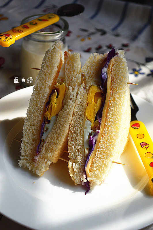 切片面包1包;鸡蛋3枚;紫甘蓝适量;