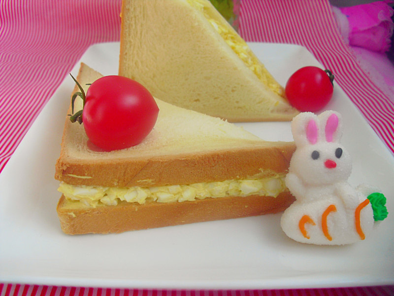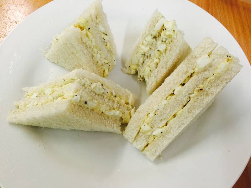5:抹一层鸡蛋沙拉,将另一片吐司盖上。