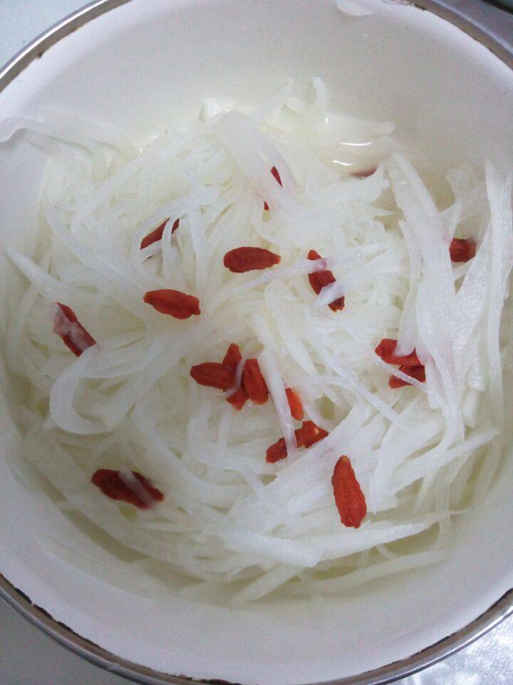 1:白萝卜半根,洗净切成丝