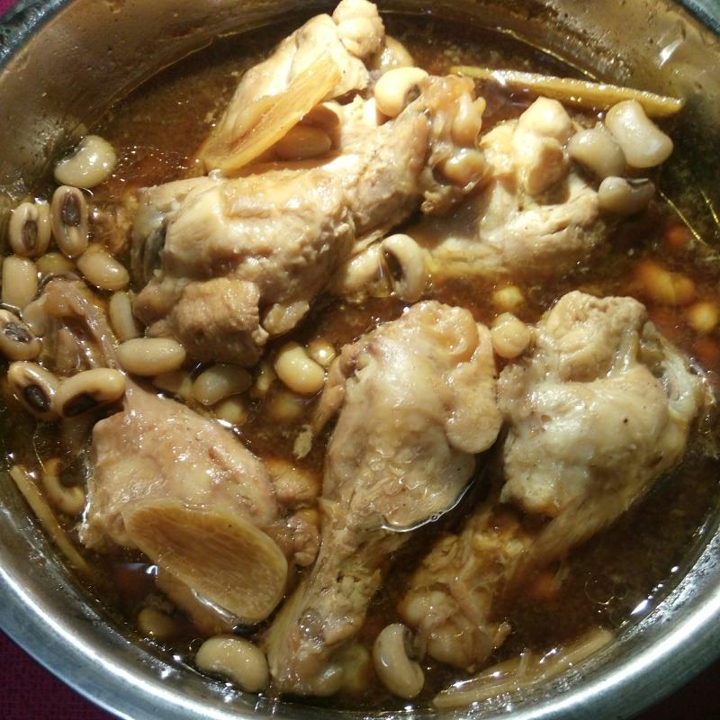 小鸡腿六个;糜豆80g;姜1块;蒜2瓣;