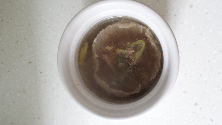 3:沿边沿倒入开水,放入姜丝和葱。(如给家中的老人吃可以放西洋参、当归、党参、天麻等)。上锅蒸半个小时。