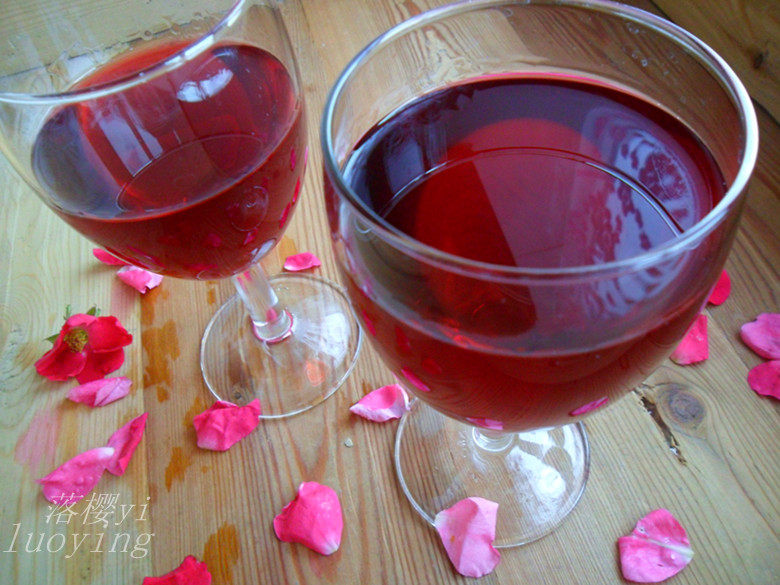 7:一瓶杨梅酒,中间颜色最深的是桑葚酒,剩下的那瓶是樱桃酒。