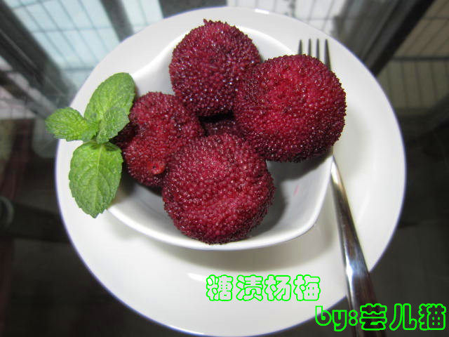 这款糖渍杨梅可以用新鲜杨梅做,也可以用做杨梅露煮后剩下的杨梅做,味道都很好吃,我是先做的杨梅露,用剩的杨梅又做了这款糖渍杨梅,真是料理中的回收再利用哦~哈哈!我也算支持环保节约不?
