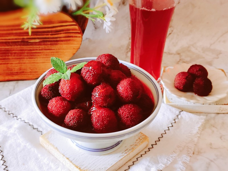 4:捞出一部分杨梅,晾干水分,放入容器中备用;
