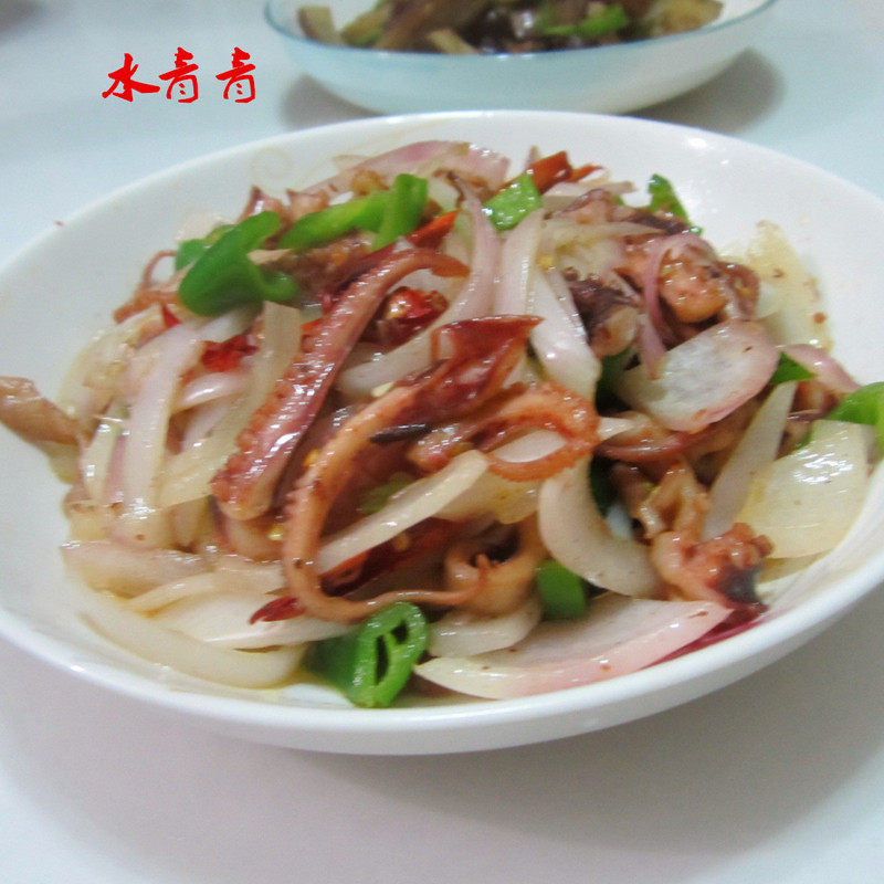 洋葱适量;鲜鱿鱼适量;辣椒适量;