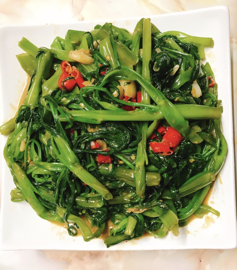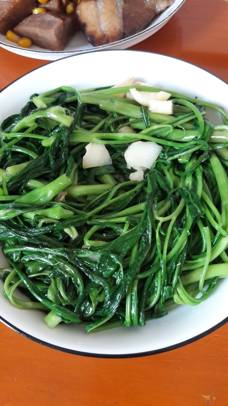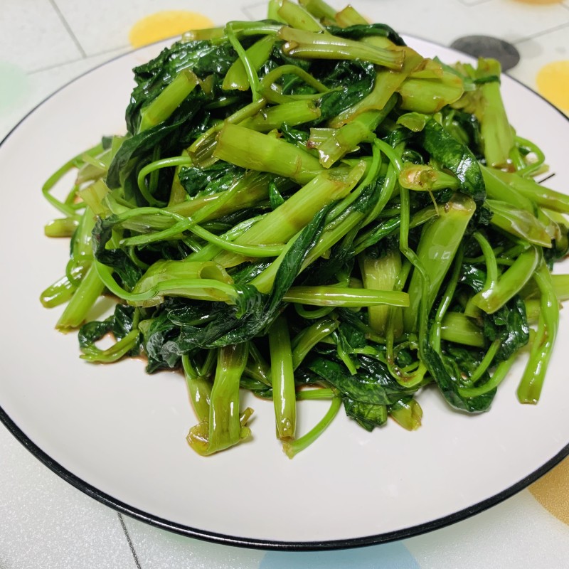 炒空心菜要快。大火,这样叶子不会变黄。忌加盖加水。