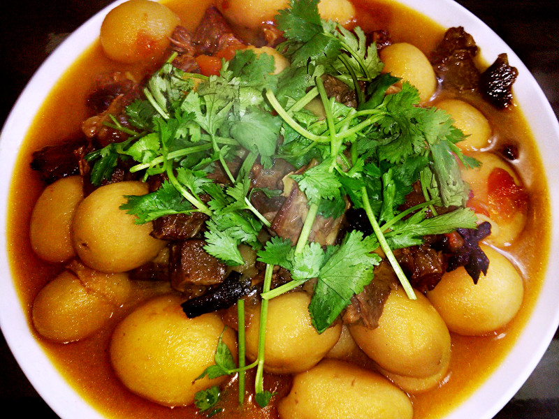 12:将做好的番茄土豆烩牛肉装盘,散上香菜就可以上桌了