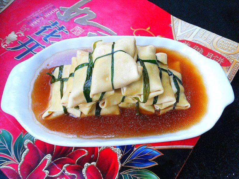 猪肉适量;干豆腐皮适量;胡萝卜适量;香菇适量;芹菜适量;