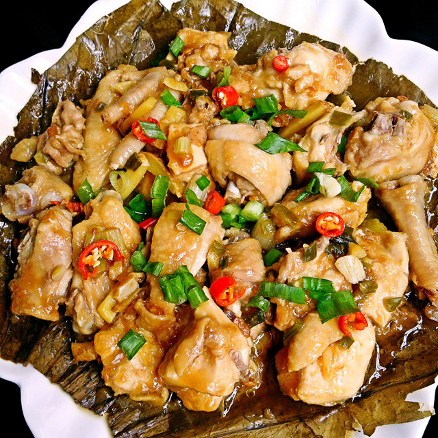 8:鸡肉鲜嫩适口,软糯鲜醇,融有荷叶的甘美清香,实在是别有风味!