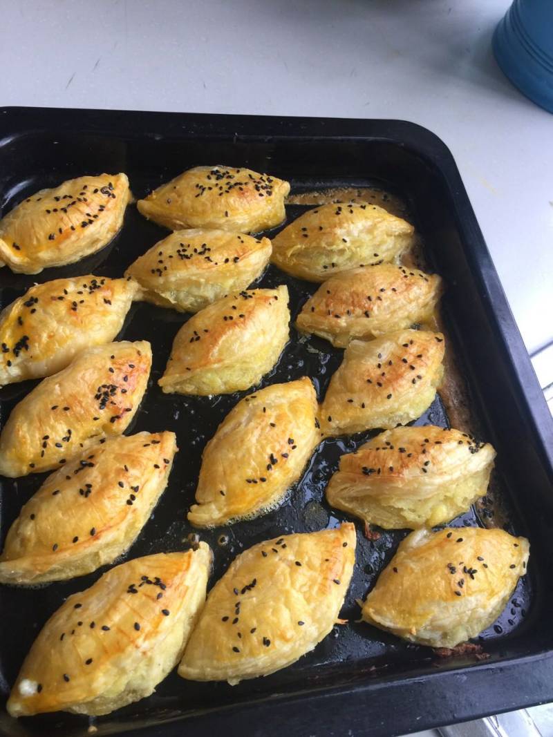 27:酥皮进预热好的烤箱中层,190度,25分钟左右,表面微黄,饼身膨胀
