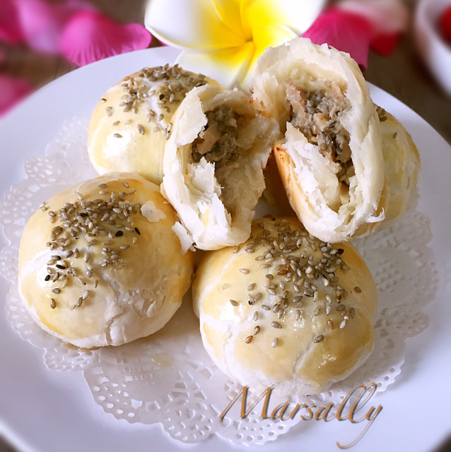 1.每一次的擀卷都必须给足松弛的时间,不可操之过急2.猪肉馅选五花肉与里脊肉混合加入榨菜、盐粉、葱姜、料酒、白糖、黑胡椒粉、老抽、炒熟的白芝麻用筷子划圈搅上劲3.每台烤箱温度都有差别,请根据自家烤箱温度调节
