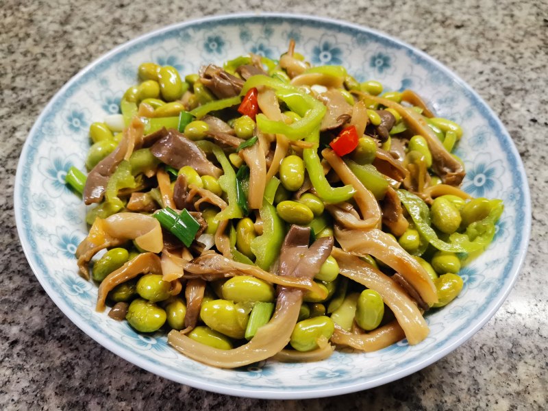 13:装盘。毛豆清香,蘑菇软嫩多汁。