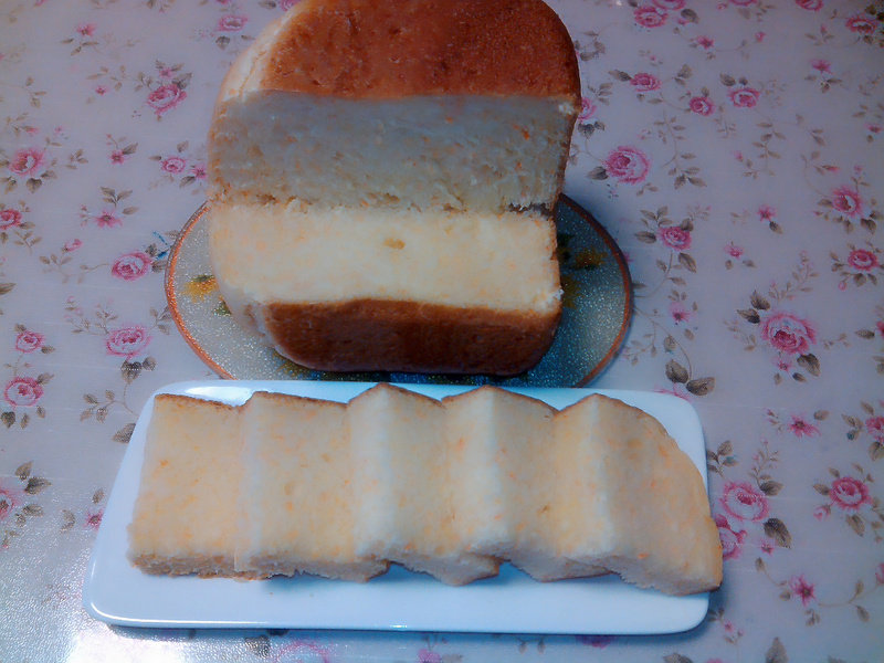 水140g;鸡蛋25g;盐4g;高筋面粉330g;胡萝卜渣80g;