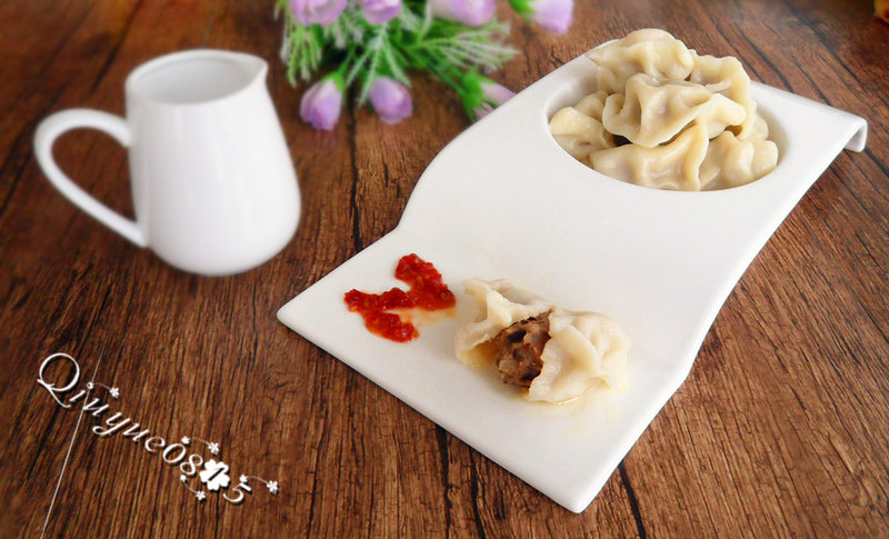 7:水开放一点盐,把饺子煮进去,用勺子轻轻的推动防止沾锅,至到饺子全部浮起。中途用冷水点上两三次水,并用勺子推动,煮熟即可。
