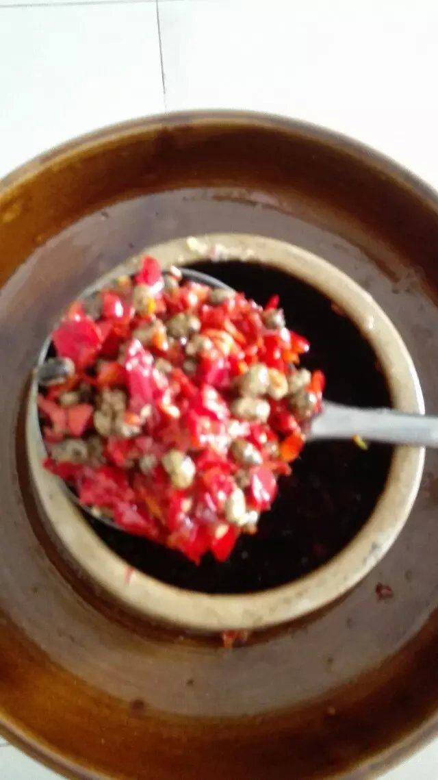 4:把所有的材料放在提前准备好的坛子一起拌均匀。密封放在得阳光的地方晒20-30天就可以使用了。直接用饼沾食,添加喜欢的配菜炒食也行