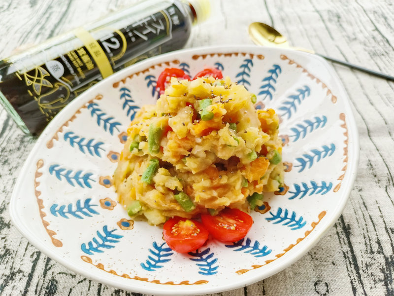 7:将蒸熟的土豆和胡萝卜碾碎。