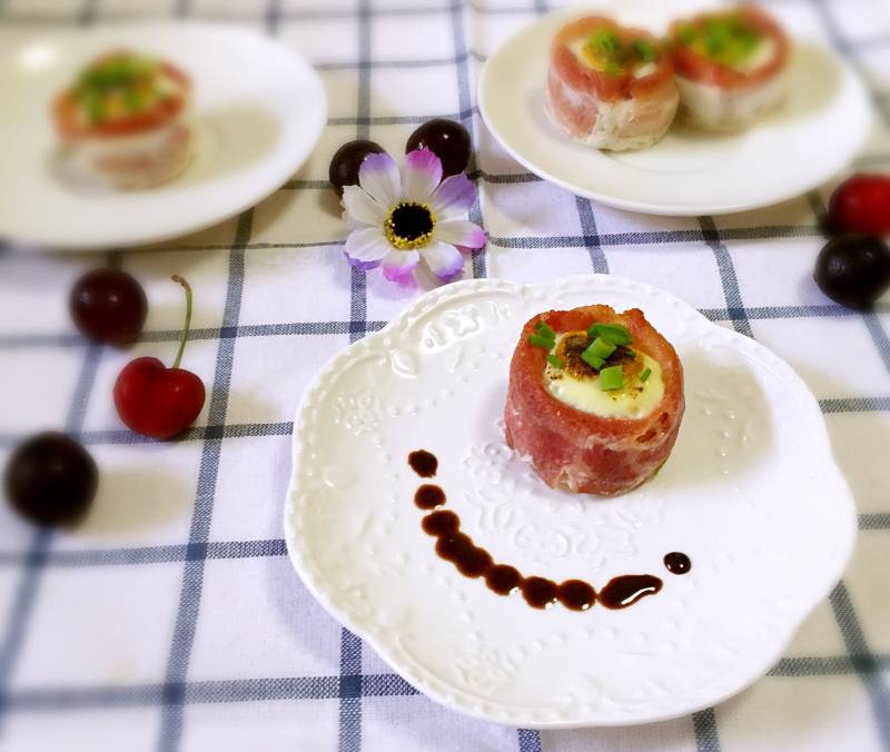 胡椒粉1克;孜然粉1克;草鸡蛋4个;盐1克;培根4片;