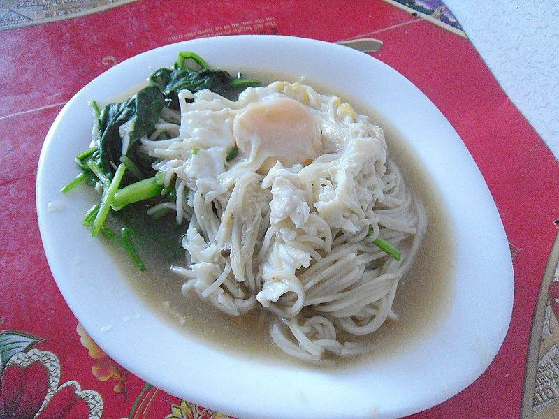 1:主辅料:龙须面、鸡蛋、菠菜调味料:浓汤宝、盐