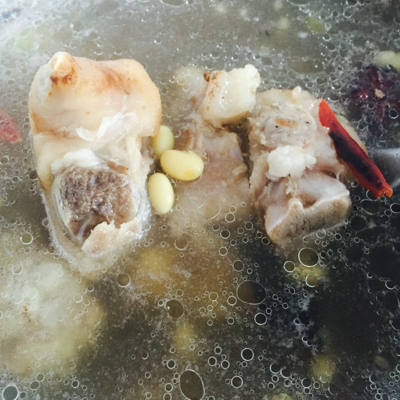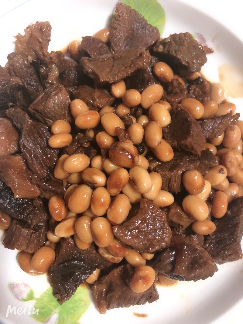 6:我放的水有点少,最后汤汁被黄豆吸收得差不多了,喜欢汤汁多的可以多放些清水。
