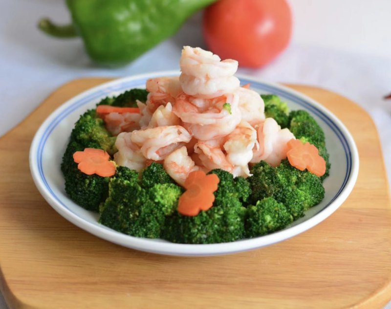 西兰花200克;虾仁6个;胡萝卜30克;