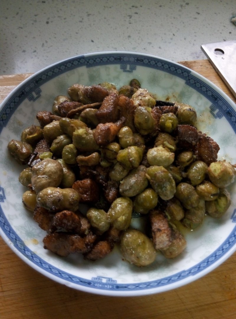 1:蚕豆米一盘,今天的有点老所以剥了皮。